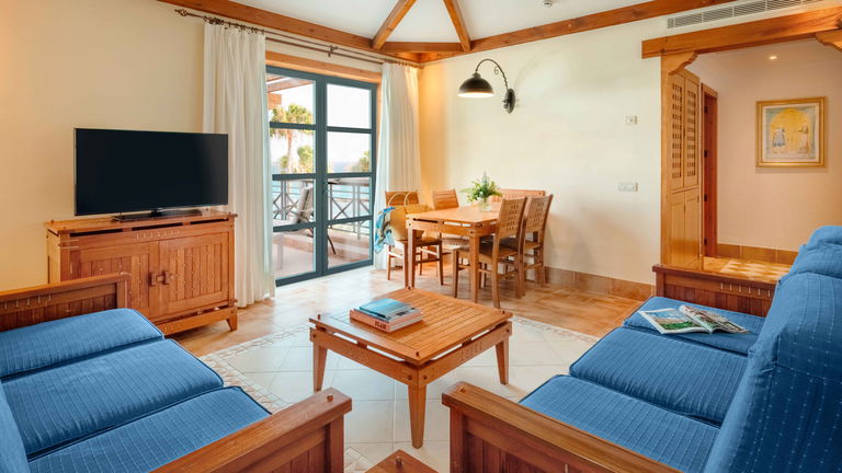 65m² Suite und 10m² Terrasse mit Blick aufs Meer. Eingerichtet und möbliert im kanarischen Kolonialstil, verfügen sie über ein Schlafzimmer, das entweder mit einem Kingsize-Bett oder zwei Einzelbetten ausgestattet ist, einem separaten Wohnbereich, ein geräumiges und separates Badezimmer mit Badewanne und extra Dusche und allen weiteren erdenklichen Annehmlichkeiten, die für einen angenehmen Aufenthalt sorgen werden.