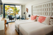 Modernos espacios desde 32 hasta 35m² de interiorismo contemporáneo. Perfecto equilibrio entre tecnología de vanguardia y lujo. 8m² de terraza iluminada por el sol del Atlántico, con vistas mar. Dormitorio con 2 camas individuales de 110 cm, sillón y cuarto de baño completo con ducha con efecto lluvia, secador, espejo iluminado de aumento y set de amenities Per Purr.