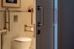 Cuarto de baño adaptado para uso con sillas de ruedas Plato de ducha accesible en silla de ruedas Encimera del baño adaptada Apoyos en los sanitarios y ducha Disponibilidad de sillas de ducha Ancho de puertas especial Colgador abatible en el armario Rampa de acceso a la terraza desde la habitación Caja de seguridad y minibar accesible desde silla de ruedas.