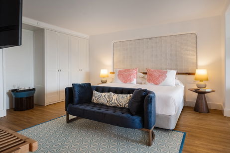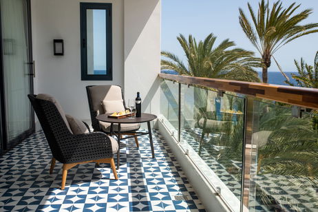 Perfecto equilibrio entre tecnología de vanguardia y lujo y 16m² de amplísima terraza exterior y espectaculares vistas panorámicas al Atlántico. Dormitorio con 2 camas individuales de 110 cm., área de estar y cuarto de baño completo, con bañera exenta, ducha independiente con efecto lluvia, secador, espejo iluminado de aumento y set de amenities Per Purr.