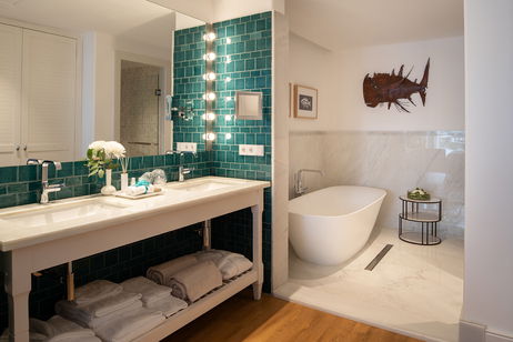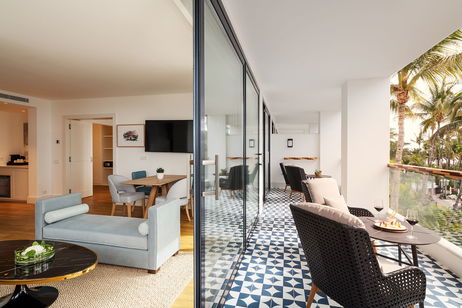 Perfecto equilibrio entre tecnología de vanguardia y lujo y 24m² de amplísima terraza exterior y espectaculares vistas panorámicas al Atlántico. Dormitorio con cama kingsize y cuarto de baño en suite y dormitorio secundario con 2 camas individuales de 110 cm., salón independiente y cuarto de baño completo, con ducha con efecto lluvia, secador, espejo iluminado de aumento y set de amenities Per Purr.