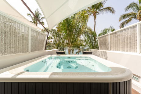Estas habitaciones están pensadas para los más exigentes clientes, que buscan un completo confort y total relajación durante su estancia. 16,5m² de amplia terraza exterior con bañera de hidromasaje privada y vistas panorámicas al atlántico.