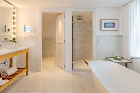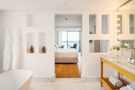 Perfecto equilibrio entre tecnología de vanguardia y lujo y 16m² de amplísima terraza exterior y espectaculares vistas panorámicas al Atlántico. Disponen de dormitorio con 2 camas individuales de 110 cm., sala de estar independiente y cuarto de baño completo, con bañera exenta, ducha independiente con efecto lluvia, secador, espejo iluminado de aumento y set de amenities Per Purr.