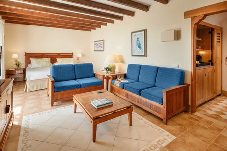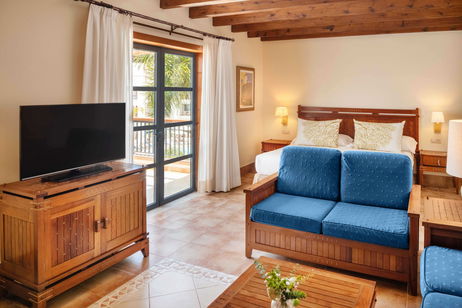Decoradas y amuebladas en estilo colonial canario, cuentan con dormitorio con cama de matrimonio o bien camas separadas, área de estar, vestidor independiente y cuarto de baño completo con bañera, y todas las demás comodidades que asegurarán una placentera estancia.